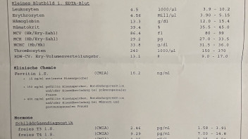 Zum T4: ich hatte zwischenzeitlich mal zu den 75 µg am Morgen noch eine viertel 75er am Abend zusätzlich genommen. Nach einiger Zeit hatte ich aber einmal täglich richtiges Herzrasen und so ein merkwürdiges Kribbeln am ganzen Körper, besonders an den Armen und Händen.