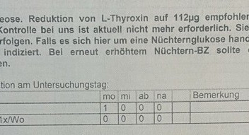 Der Endokrinologe empfiehlt nun die Dosierung meins L-Thyroxin auf 122mcg zu reduzieren. Ansonsten meinte er nur "Ihre Symptome sind halt so bei Hashimoto". Lediglich der Glukosewert wird in seiner Beurteilung wirklich erwähnt.